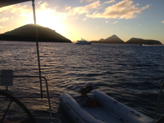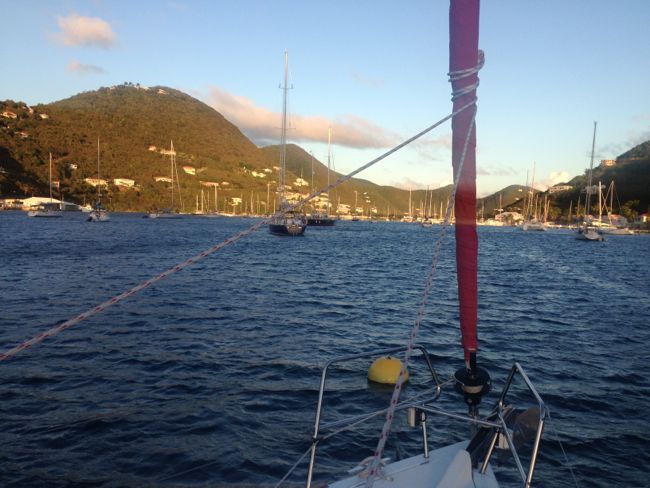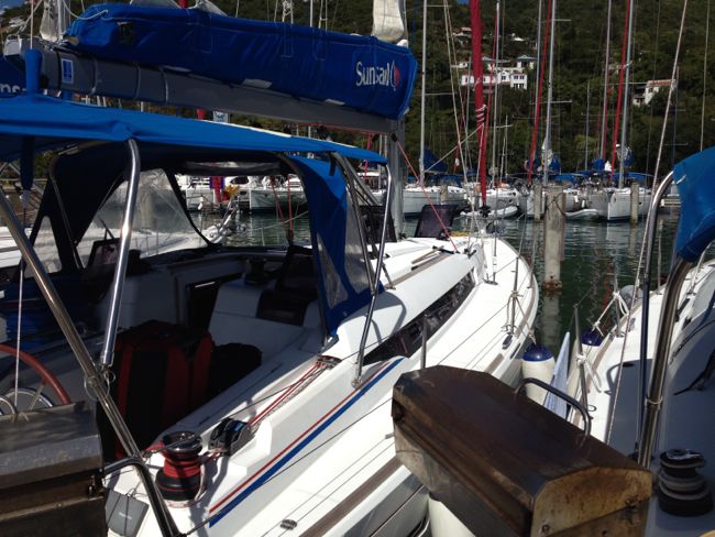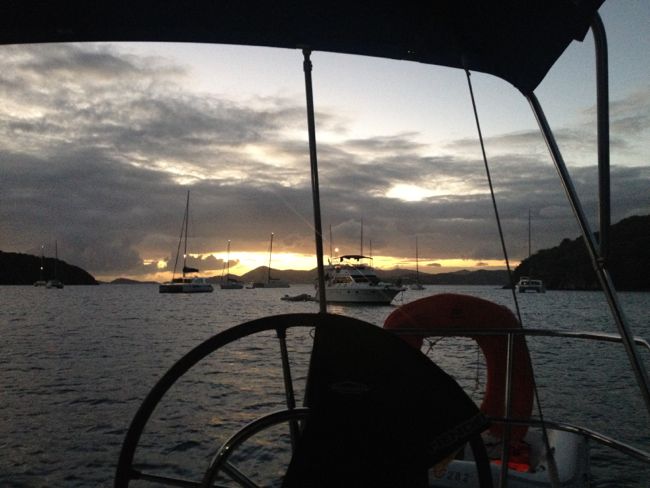 Saturday: We took a full day to travel from Maryland to the BVIs by way of Philadelphia, starting by getting up at 3:30am. We arrived at the boat around dusk and had time to unpack and grab dinner at the Sunsail base (it has two good restaurants). Although we’d chartered in the BVIs before, we attended the skipper’s briefing on the various destination ports.