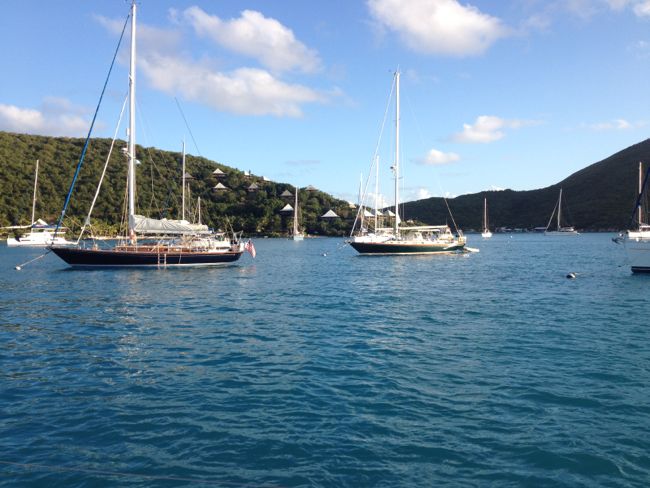 Friday: We enjoyed our longest sail of the week on Friday, a four hour downwind run to Jost Van Dyke. We had lunch on board during the trip – even luxuriating in having the helmsman sit at the table for a bite while the auto pilot steered. We stopped for drinks at the Soggy Dollar (Google this one too) where the crowd resembled a blend between cruise ship passengers and college spring breakers. In fact, if you can imaging spring breakers whose maturity level stunted in college but have since aged 20 years or so, you’ll get a good feeling for the crowd there. It’s great people watching if nothing else, and one has to say s/he has stopped there during a visit to the BVIs. From there we enjoyed a brief beat to Soper’s Hole. At Soper’s hole we once again found a great shortage of moorings, though we were lucky enough to grab the last one available. The next morning we discovered one reason why it had remained unclaimed: the outer-most moorings at Soper’s Hole suffer from mammoth ferry boat wakes starting at daybreak. It was an eye opener for sure, so if you can’t get a mooring further in, turn in early the evening you arrive at Soper’s Hole!