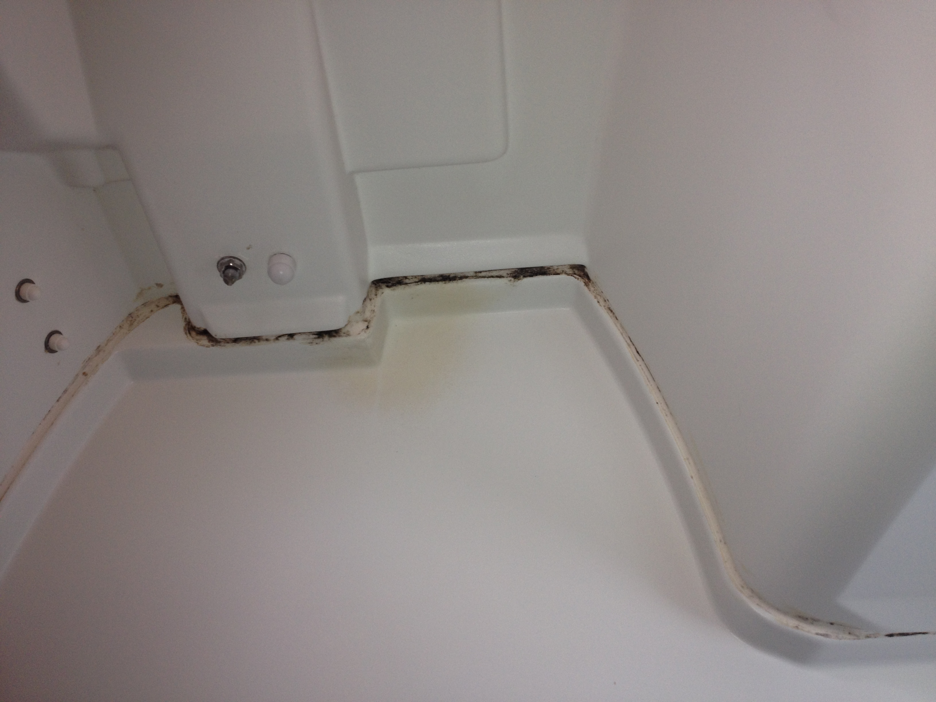 Down below we found a couple of items that Jeanneau could improve upon. The most important among them: some gaps between bulkheads and deck are filled with a white caulk. On our charter boat the sealer had attracted mildew like crazy, which discolored the caulk. We would have preferred that finish panels conceal these seams so that owners would not need to continuously clean these areas. We also noted some minor fit and finish issues with the cabinetry that could be improved upon.