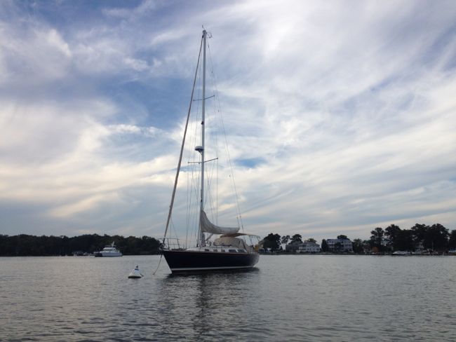 For the second weekend in a row we had only light winds, and so relied on the diesel exclusively to get to and from Rock Hall. But we had an absolutely fantastic time nonetheless, and we’re happy to be putting plenty of testing hours on the engine before next season. So far we are right on track with our Fall plan of getting as much experience with the boat as possible to (i) learn how everything works (ii) learn as much as we can about living aboard and (iii) find as many bugs / problems / issues as we can so that we can work over the winter to make the boat as reliable as possible for next season. We currently have a very long list of mostly minor problems, which is terrific news. We continue to be most leery of the diesel but our confidence is growing after putting over 15 hours on it over the last two weekends.