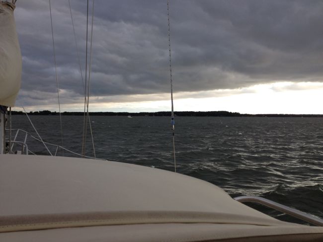 The longer we sail, though, the better and better I am feeling. Seb is punching through the chop, and the knot meter is reporting good speeds through the water. But only by watching the coastline and the chart plotter over the next couple of hours do we start to realize that the Sabre is doing a great job of getting us upwind without driving us sideways into the shallows. Although we initially provide for it generously with our laylines, Seb makes almost no leeway at all and as time passes we start to pick laylines almost entirely based on the sailing angles. The dynamics of the boat are excellent too. With both sails partially reefed we are able to balance the helm out perfectly and Seb proves to be as pleasant to drive upwind through the these conditions as she is any other time.