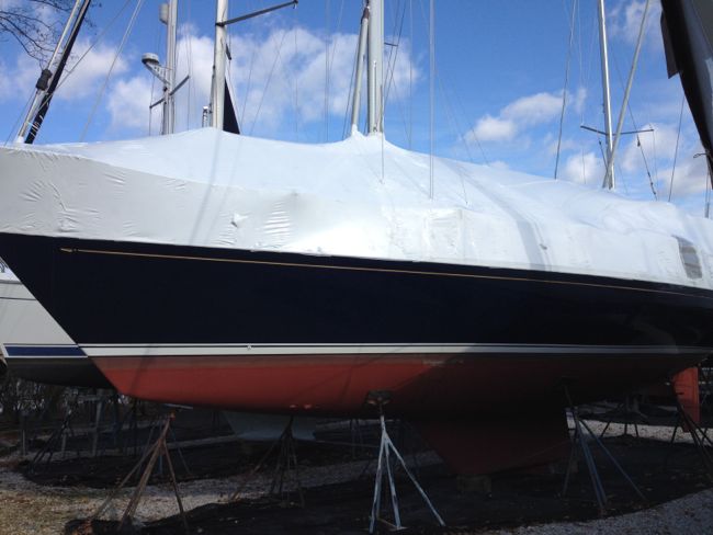 Below: although the boat is wrapped, I carefully sealed the holes where the portholes normally live. It was a good thing I did: in heavy rains this Tuesday I learned that small amounts of rainwater do indeed make it through the shrink wrap boat cover and water would have gotten inside.