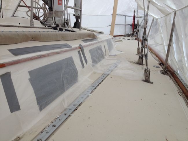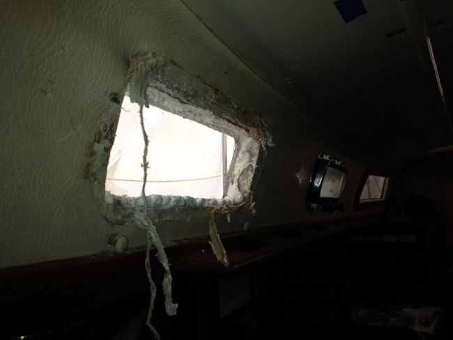 There is plenty going on down at the boatyard and in the shop. Much of the salon’s headliner has been taken down to chase a variety of small leaks.