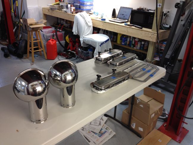 Below: an assembly of parts to be worked on during dark weeknights in the shop. I’ve learned that work on the boat is fine on the weekends, but I hate cold, dark nights in the boatyard. The shop is a much nicer evening work environment.