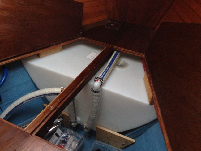 We have new life lines and all new cordage. The holding tank and new macerator pump are buttoned up.