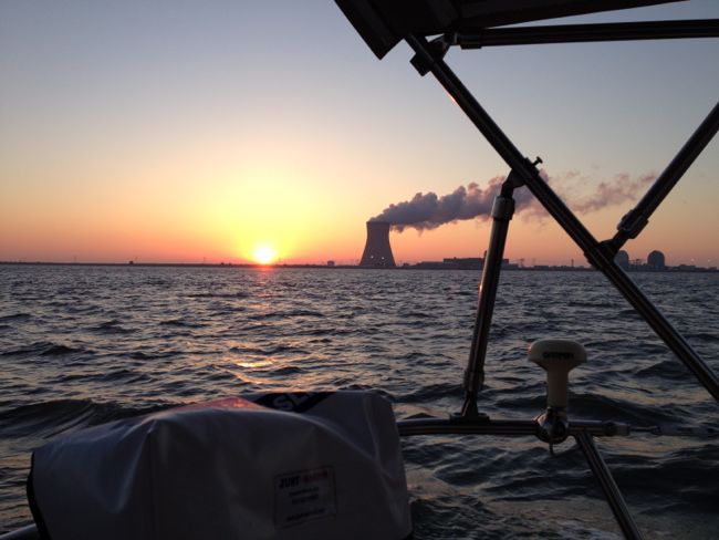 Last Thursday evening we departed just before 8 as soaking all-day rains were drying up. We motored through the night into very light northerlies and enjoyed a beautiful sunrise Friday morning as we made our way down the Delaware river.