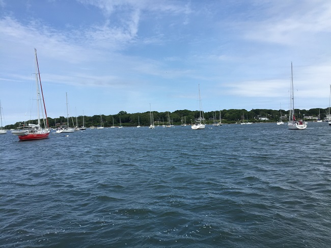 Or take today’s single-handed day sail as another example. I started out on a close reach under jib alone, then reached off after rounding Beavertail Point to head North again so I could get a look at Dutch Harbor for the first time. Once there I luxuriated in the opportunity to star in a living postcard.