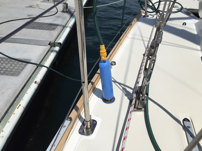 The second reason to avoid the ‘overflow’ method is even more elementary: filling the tanks with the inspection port opened is the only way to get the tank completely full. Our tanks conform to the contours of the hull and are half-V shaped in cross section. That means that the last inch of water one adds accounts for many times the amount of water that the first inch of water in the tank accounts for. Based on what I observe while filling with the inspection point open, I believe that water would begin to back up through the fill tube long before the tank is actually full were the inspection port left closed. That means that our disappointing fresh water supplies last year may have been as much about under-filling our tanks as it was about over consumption (blush). While it’s certainly true that it’s a hassle to move all of the cushions from each settee each time the tanks need to be filled, this method is less of a hassle than running in to the dock more often to fill tanks.