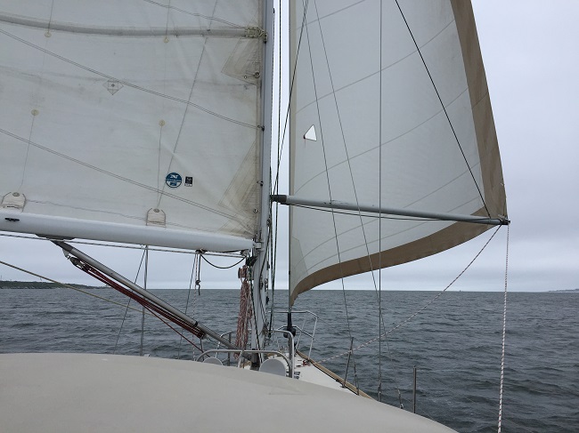 We set the main at the mooring and then enjoyed a brief close reach out of the Narragansett Bay before jibing around and reaching back north again up to Dutch Harbor. We noticed almost no one out boating by the time we took our mooring at Dutch after enjoying a terrific sail.