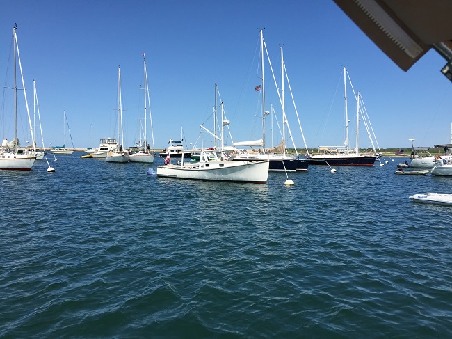 There are no onshore shower facilities at Cuttyhunk, but there is awesome fresh-off-the-boat seafood market that allowed us to luxuriate in a cockpit dinner of grilled corn on the cob, scallops and fresh lobster.