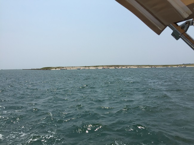 IMG_6777A thermal breeze built as we approached the south shore of the Cape so we doused the jib and ran under mainsail alone to maintain better maneuverability through the unfamiliar navigational approaches to Hyannis.