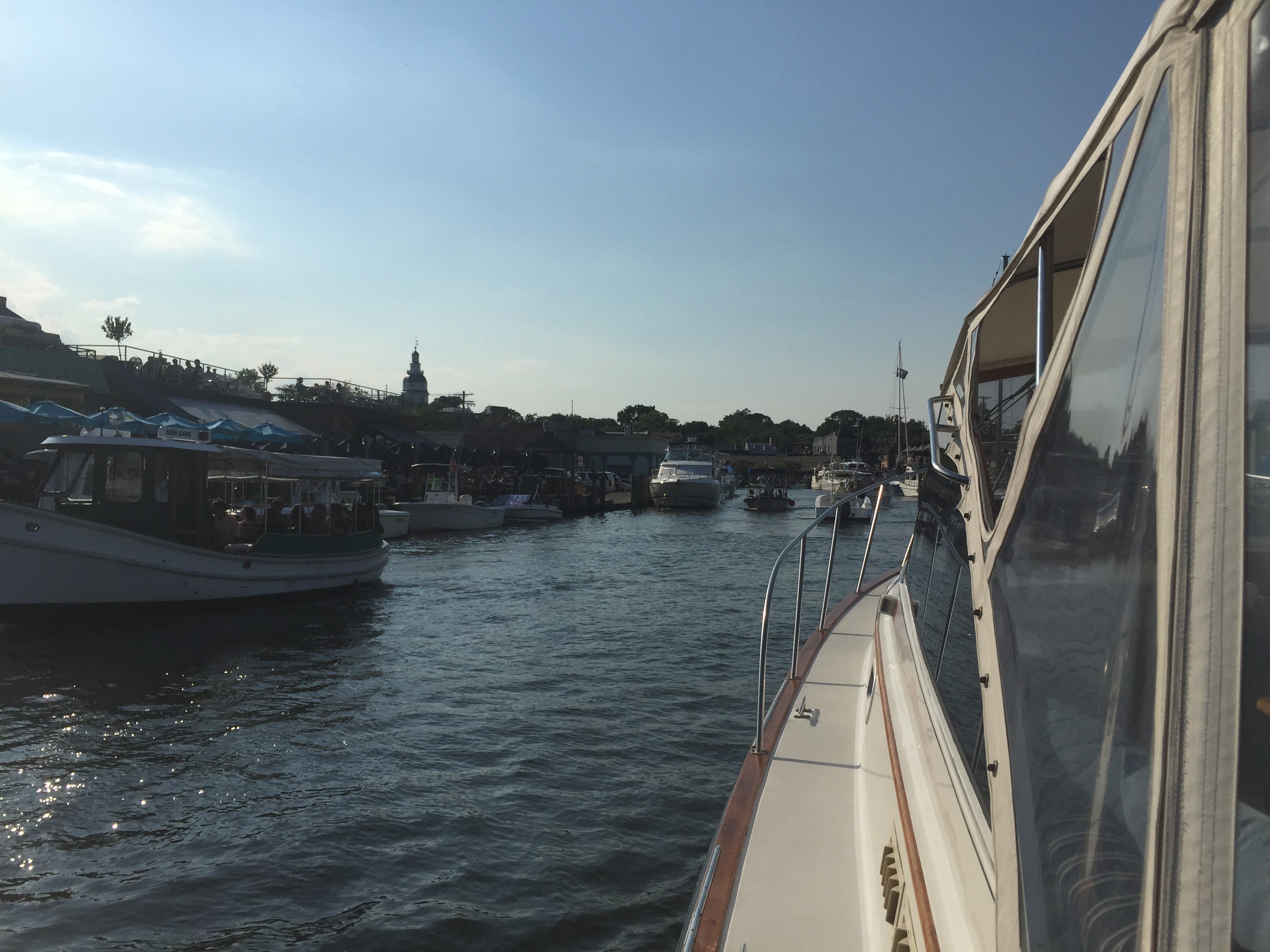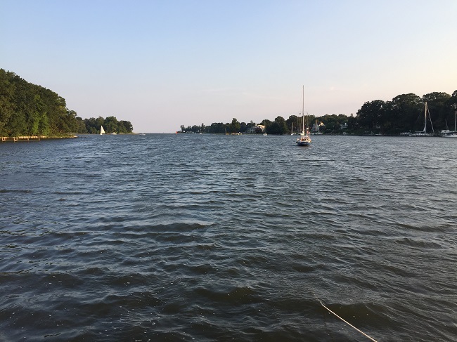 This weekend, I am back in Annapolis for a mid-summer visit after 46 consecutive days living aboard the sailboat in Newport (54 total for the season!) and we decided to take Game Day, Brian & Paula’s much-loved Little Harbor Express 36 for an evening cruise through downtown Annapolis, then for dinner and a night on the anchor in Whitehall Bay. The quick overnight cruise made for a thoroughly enjoyable weekend.