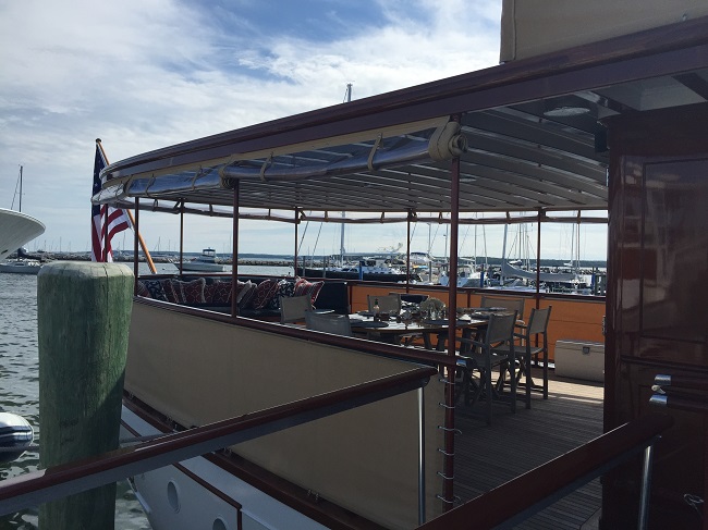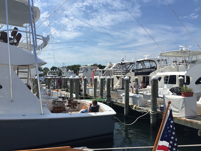 We tied up at the Montauk Yacht Club, which is actually a resort that is a “club” in name only. Here we encountered the biggest change in marina culture we’ve seen all summer. Dominated by large and expensive sport fishing power boats, Montauk Yacht Club is frequented by a clientele with a heavy “Jersey Shore” presence. Each yacht is boxed in with a couple of feet to spare on either side, leaving only a view of the dock and the neighbors. Like the “club,” many of these “boaters” seemed to be mariners mostly in name and seemed very content to hang out on the back porches of their yachts for the majority of the weekend. It’s sort of an urban version of boating.  The resort amenities of the marina certainly were luxurious, but I still didn’t quite ‘get’ the scene.