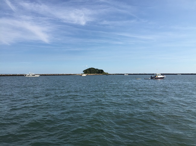 When I arrived I found 15-20 feet of water and anchored as close to the western breakwater as I deemed prudent. I quickly came to realize that a leftover ocean swell combines with large volumes of recreational and commercial fishing boat traffic to generate a ton of swell in Harbor of Refuge – swell that the degraded breakwater only partially stops.