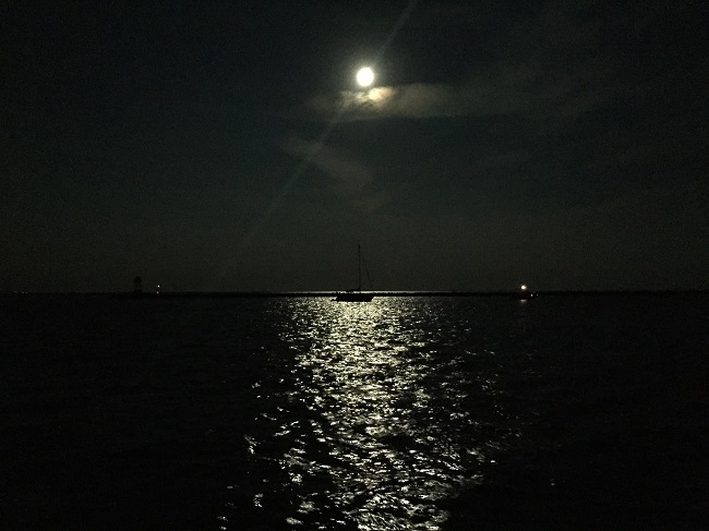 Still, the site is so scenic and I found my visit there so exciting (what could feel more dramatic than anchoring in a ‘harbor of refuge’ while making one’s first single-handed passage?!?) that I decided the roll was totally worth it. Once night fell and a dazzling moon lit up the nearly desolate anchorage, I knew I was right. Listening to the waves crash on the rocks of the breakwater while enjoying the view (and a scotch), I couldn’t remember a more magical setting in my life.