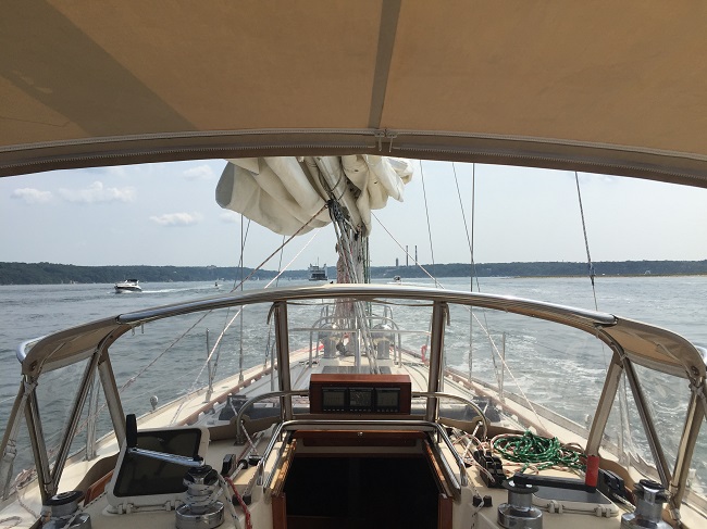 It’s late August, and with our scheduled Newport-area cruises complete, we decided to start the trip home to Annapolis via a slow September cruise of Long Island Sound. As the first leg in the journey, I decided to work on building some new skills by making my first single-handed passage. Although I’ve done a fair amount of single-handed day sailing since we bought Le Saberage late last summer, single handed passage making would stretch a whole new set of muscles.