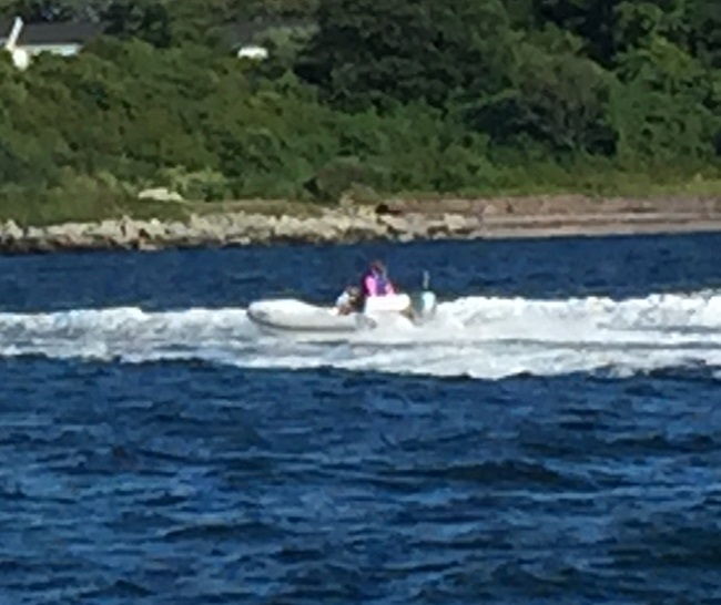That’s the operators small children riding in a small inflatable tender. Effectively, tubing, using their tender. In the middle of the Narragansett shipping channel. During a very strong flood current. At full planing speed. Watching the way it bounced at those speeds, it would only have taken one power boat wake to have pitched those kids 5 feet into the air and out of the tender.