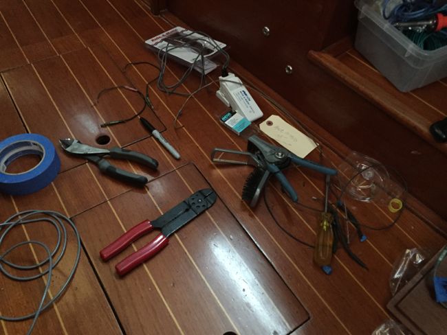 It’s pushing 7PM on Tuesday night, and I’m lying on my side, on the sole of the Sabre, with my arm submerged halfway in cold, smelly, oily bilge water and extended to its limits under the flooring as I work to fasten a new bilge pump float switch to the hull using only feel and instinct. My fingers work in the darkness while I stare up at the headliner and reflect on the percentage of fix-it projects we’ve had to take on aboard the Sabre through no fault of the factory but as a result of past over-confident / under-skilled do-it-yourselfers or lousy “professional” yard work. It’s got to be the vast majority. Two of last winter’s biggest projects, in fact, were taken on for just this reason: replacing one of the cracked holding tanks and re-bedding the poorly installed stainless opening portholes. Those projects are still only half complete; this winter the aft holding tank gets replaced and two of the six portholes are left to go. Continue reading Lesson Number 5,000(?) In How Not To Repair A Boat →