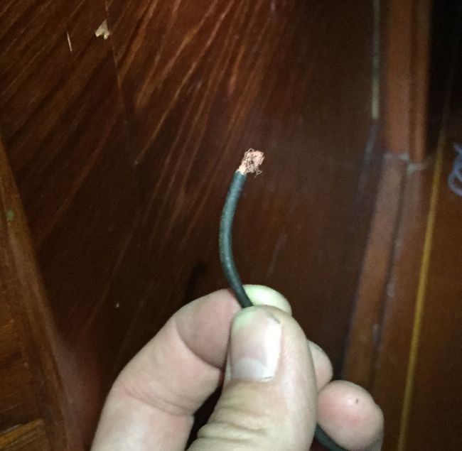 This time, two week nights’ worth of labor have been expended re-wiring what turned out to be a perfectly functional float switch (I replaced it with a new one just the same) after discovering that the pump’s failure was attributable not to the switch, but to a prior boat yard or DIY’er having used cheap household wiring and butt connectors instead of the real marine stuff when replacing past float switches. The result? After cutting and stripping the ends of the wiring as I looked to trace the electrical fault, I found the copper wiring literally crumbling to dust between my fingers.