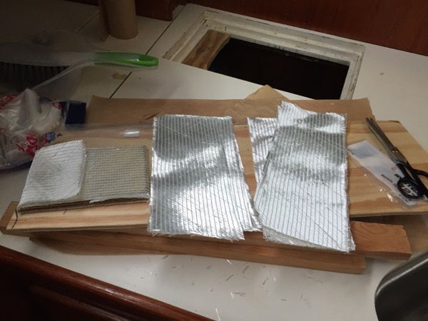 While the fillet kicked I started cutting tabs out of 17-oz biaxial West System fiberglass cloth.
