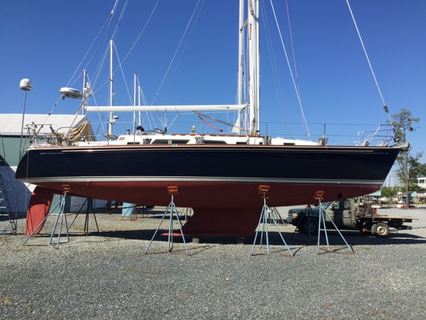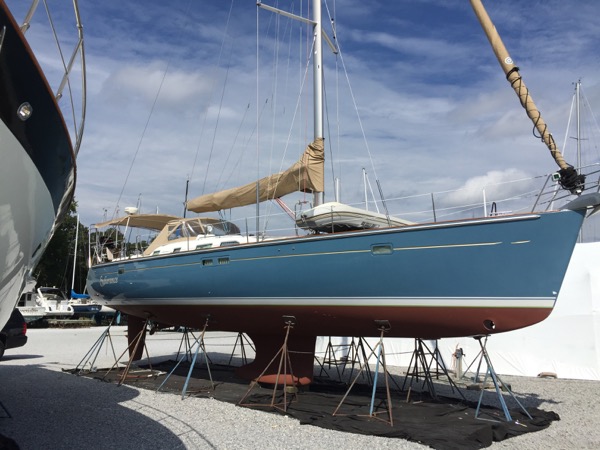 With the model identified (a Beneteau Oceanis 473), I took a ride through Jabin’s Yacht Yard to see if a similar model could be viewed out of the water and if its keel design could provide any clues as to why it performed so poorly going to weather relative to my 1989 Sabre. I found not one but two 473s, and It didn’t take long to identify the problem: a very poor keel design. Looking around the yard one can only conclude that most of the production cruising boat manufacturers seem to have thrown basic keel design principles out the window. As a primer, take a look at this white paper on keel design. The paper deals with a variety of aspects of foil shape that will result in good performance (which, like a sail or an airplane wing, means the best lift / drag ratio possible). One critical concept will come through if you read through the entire paper: the only part of a keel that really produces lift is the airplane-wing-like flat section whose shape is not distorted by either a bulb (on the bottom) or a fillet (at the hull). Specifically, the author points out that “the addition of [a bulb] for a fixed draft [reduces] the available span of the keel.” What is meant by the “available span” is the portion of the foil that actually produces lift. The paper also specifically calculates a span / draft figure for different designs to formalize this notion.