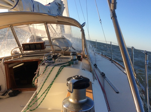 The evening of Sunday, October 23 found me feeling a bit anxious about Monday’s forecast. As I sipped my evening scotch I listened to the weather over the VHF and looked online at Sailflow. The very same 20-25 knot westerly winds that I could hear whistling unrestrained through my Sabre’s rig were forecast to persist the next day – at least until 11am or so. At that point the forecast called for the winds to clock to the right and to moderate. If I left at dawn – which was necessary if I was to ensure a pre-dusk arrival in Hampton, Virginia – I would be leaving the tight Tangier inlet in a brutal chop and would need to beat straight into that same steep chop for 4-5 hours before the wind moderated and I could reach under more civilized conditions. Continue reading Drivin’ South: Tangier Island To Hampton, Virginia Single Handed