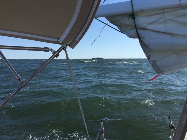 As I approached Tangier, I came across a Navy bombing range. There’s nothing like sailing single handed out in the middle of nowhere, out of cell phone range, with nothing but a shipwreck that could be bombed at any moment to keep you company!