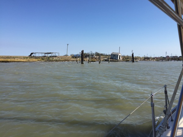 Westerly winds are rare on the Chesapeake, so if you are planning an approach to Tangier be ready for an approach to a shallow lee shore with a tiny channel if you’re in a westerly. It is certainly a daylight only approach and not for the weak-kneed in a big breeze.