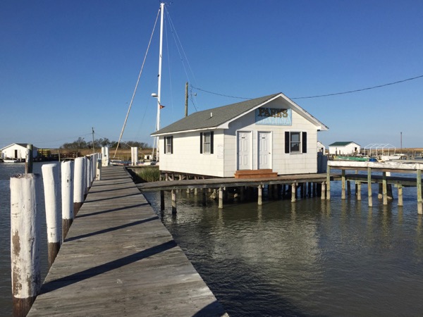 The cruising guides embellish considerably when they describe Parks “Marina.” Mr. Parks is very friendly, but he’s an elderly gentleman with a dock in front of his house – and that’s the marina on Tangier Island. It’s charming and quaint, but a marina it ain’t! The current rips through the channel and so past the docks, so visitors need to be on their toes docking and departing.