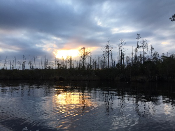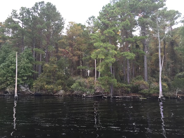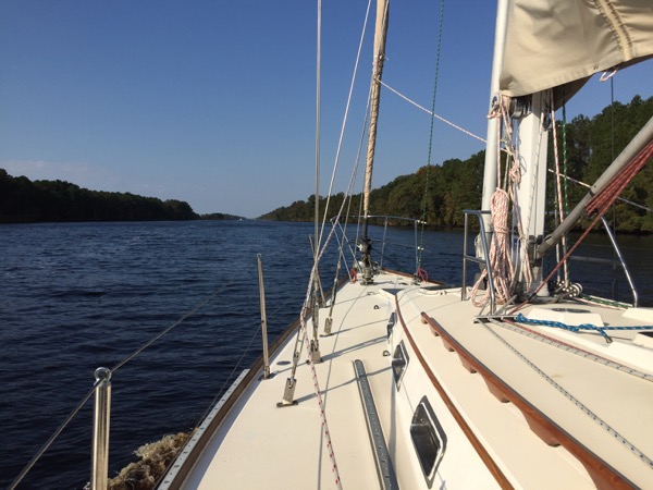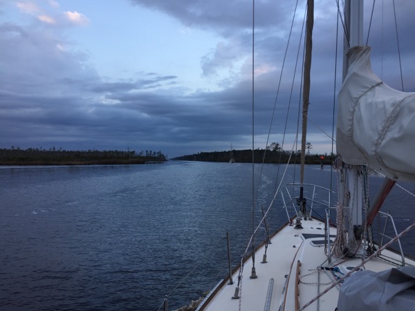 After weighing anchor, we entered the Alligator River – Pungo River Canal and marveled at the scenery – a miles long canal cut straight through the center of a swamp. The highlight from the scenery here wouldn’t be the swamp itself, but the clouds of small birds hunting for bugs above us for the entirety of our trip through the canal. They were so populous as to resemble a cloud of mosquitos – especially if one magnified the spectacle by looking through binoculars. I couldn’t help but ponder the notion that tens of millions of people in the United States were at that very moment expending the day’s hours under the fluorescent lights of office spaces – for the purpose, as the saying goes, of “buying things they don’t need, with money the don’t have, to impress people they don’t like.” Naturally I’m not saying anyone who doesn’t quit their job for the life of a vagabond at sea is a fool, but there is something more than a little foolish about missing out on experiences like this one in favor of converting our time on earth into more material excess. There’s got to be a better balance to be struck than the one 99% of us choose. But alas, enough philosophizing.