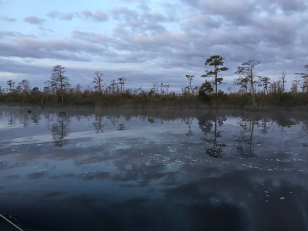 The Deep Point anchorage serves as a very convenient stop for the night before traversing the Alligator River – Pungo River Canal. Although it borders more swamp (ewwwwww) it’s far enough removed from the scene to make it, well, scenic – from an agreeable distance. We had a terrific late afternoon cocktail hour watching other sailboats arrive and set anchor. Although we experienced blustery winds over night, the holding was excellent and the anchor alarm stayed silent. One important note for the internet-dependent: cell phone signals here across three carriers were all zero to extremely weak, so be sure loved ones know you are safe and sound prior to reaching this location.
