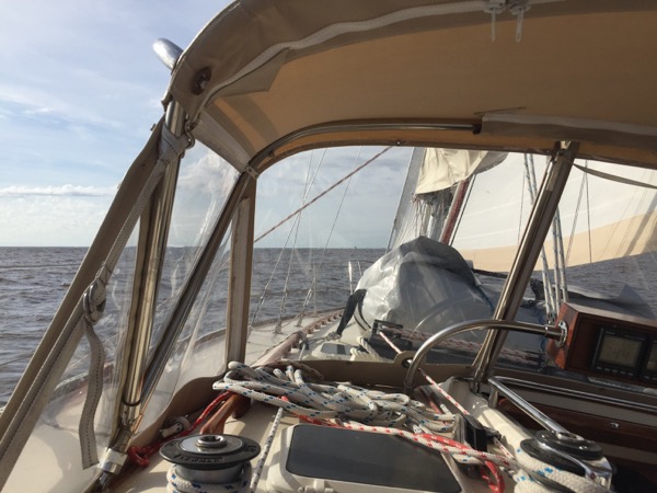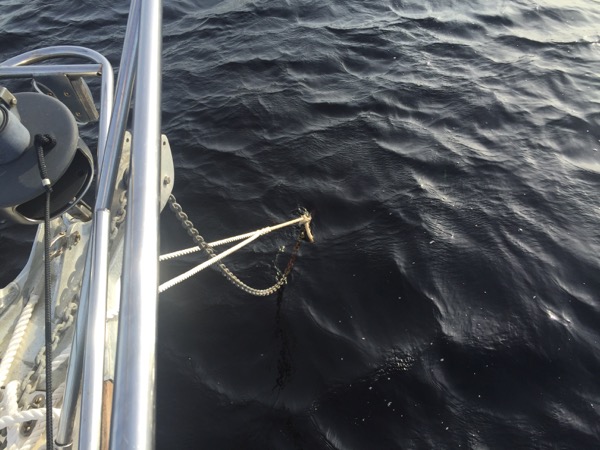 Brian flew in to join me for this leg and the two that followed it. It was great to have some company and YES – I did indeed get that hot breakfast I’d been dreaming about while standing a wheel watch! Afterward I went below and luxuriated in a hot cloth wash down and shave while Le Saberage kept making miles south.