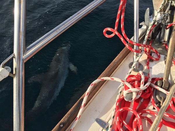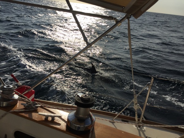 The wildlife seemed to thoroughly approve of either my morning’s boat handling or Roger Hewson’s underwater design with the Sabre, because no sooner had I fired up the Westerbeke than a pod of dolphins came to cheer me on.