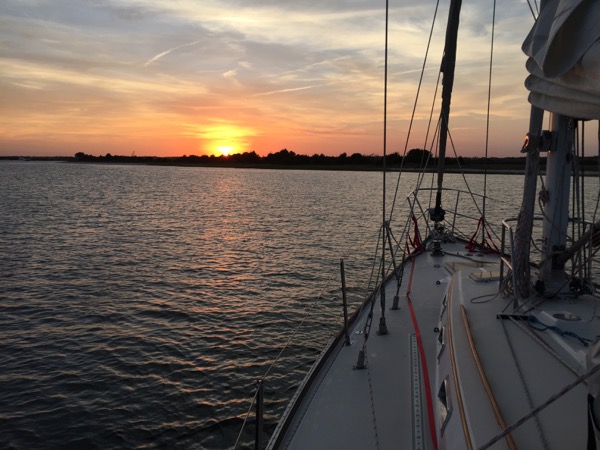 Le Saberage and her trusty Westerbeke diesel spirited me on to Wrightsville Beach, where I made a perfect entrance just before sunset. I can’t ever remember a feeling of such jubilation as I felt that evening, taking on spectacular surroundings and being visited by another pair of dolphins while at anchor.