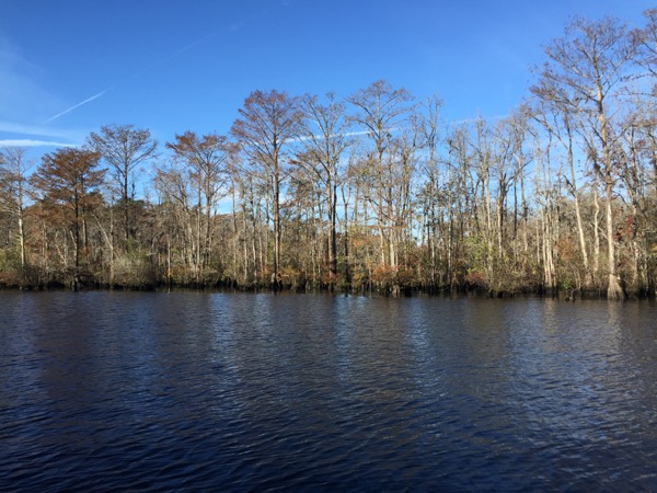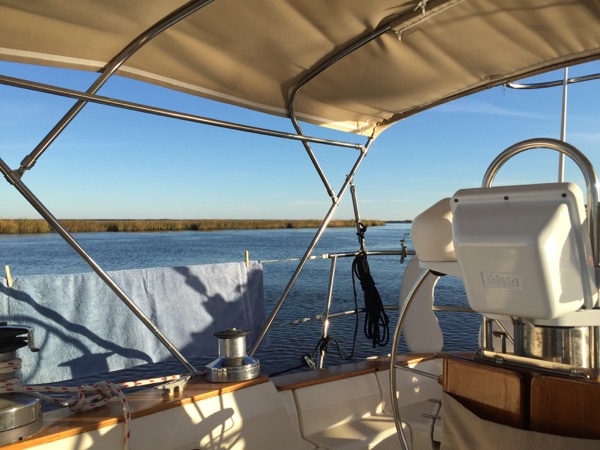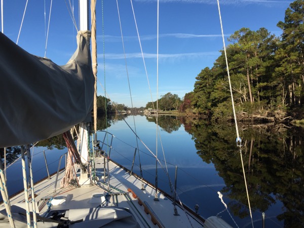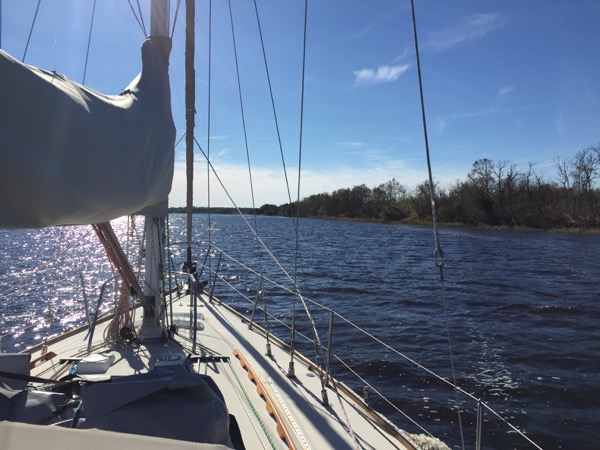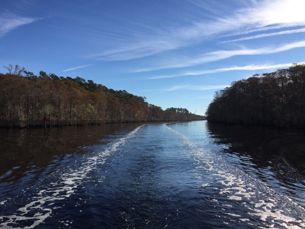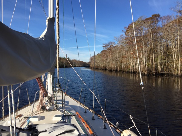 However, heading south one next encounters Cypress Swamp, which was by a margin my least favorite part of the trip. Motoring a sailboat through a swamp has some novelty to start with, but before long I found this totally isolated spot to be just plain creepy. I throttled the Westerbeke up to get out of it as quickly as I could while praying to the diesel gods for a reliable passage.