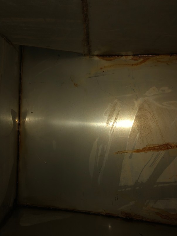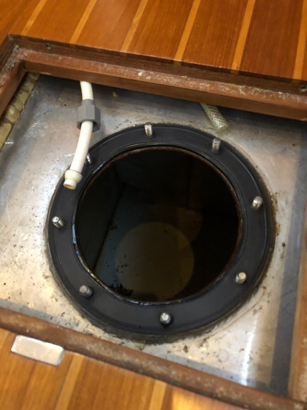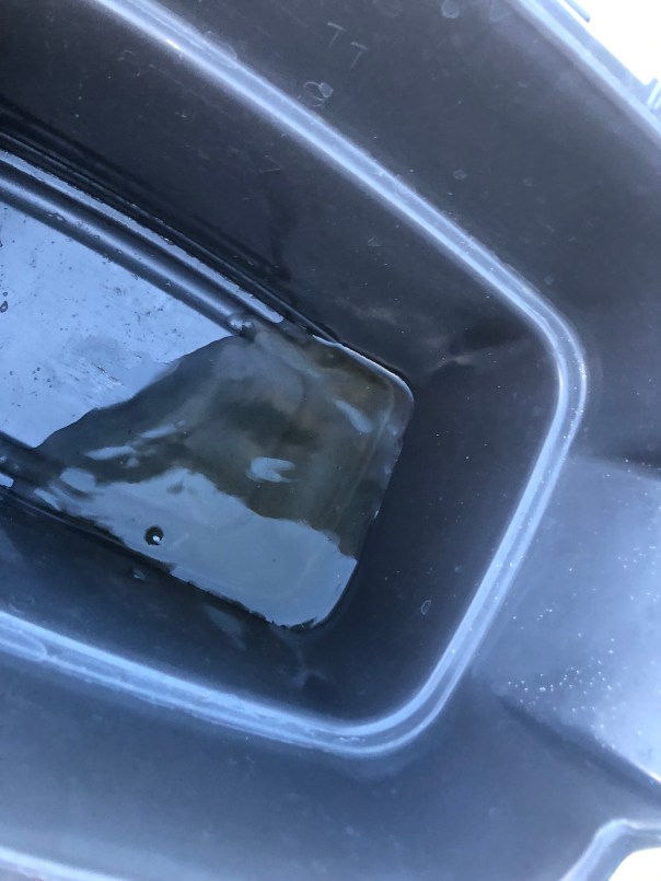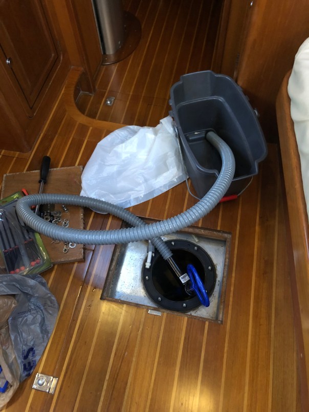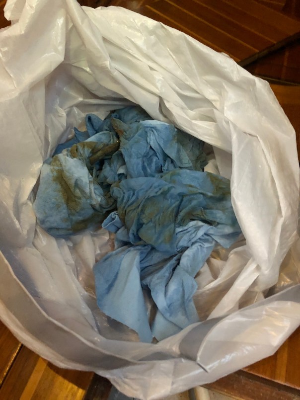 Not what you want to be drinking so it’s a good practice to periodically pump the last drops of the water out of each tank with a hand pump and then wipe down the interior surfaces as best as they can be reached. One water tank down and three to go!