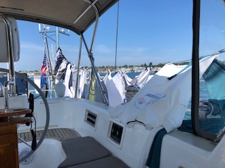 We the headed northeast on a 205 mile, 26 hour motorsail to Block Island, RI and anchored in Great Salt Pond on the 4th of July weekend…mistake? We were warned. Our arrival brought drama as we watched poor anchoring skills of those around us and many hitting other boats, dragging anchors and getting free. It was a symphony of yelling and a ballet of harbormaster boats zipping around to keep everyone safe and taking the offenders to “mooring jail” as we affectionately referred to it.  Rover thankfully avoided all the mess and had no issues. Block Island is small, but, mighty. It has a harbor town where the ferry comes in, so the usual food places and shops for tourists abound.  It offers good hill runs with the inside loop of about 5-6miles and many picturesque ocean views. A nice long hilly morning run can be rewarded that evening with a frozen Mudslide drink (vodka, Bailey’s, cream and coffee liquor) from the Oar Restaurant.  The dinghy dock is at the Oar which makes it very convenient. There is another marina area and raucous bar called the Shoals, but we looked on from afar as there was no social distancing going on there.