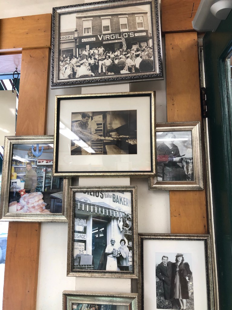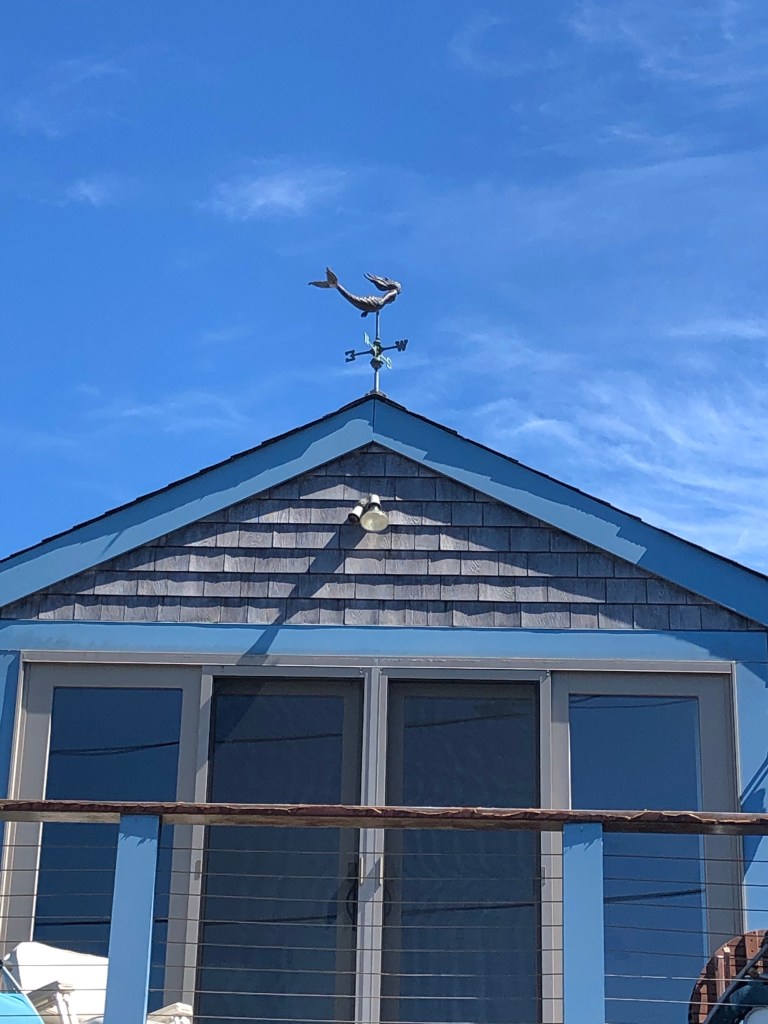 Our first 2 nights were in Gloucester (Glostah as the locals will say). This is a true working port, very distinct from many of the charming, quaint locales we have been to. The numerous lobster boats, fishing boats, very loud seagulls, gulls, more gulls, and the subtle fish smell in the air are the big giveaways as to the livelihood of this port. Glostah is also known for the Andrea Gail, commercial swordfishing boat that was lost at sea in 1991 and the basis for the book and movie “The Perfect Storm.” (Of course we had to watch this onboard, just because, when in Gloucester…). We moored in the Inner harbor with a nearby dinghy dock. There are few leisure/cruising boats here, most spending about 1-2 nights. Onshore there is a bit of traffic and many semi trucks. We learned this is the home base for Gorton’s Seafood, you know the bearded guy with the bright yellow hat and rain jacket? Maybe you remember the tune, “trust the Gorton’s fisherman…” or the famous frozen fish sticks! Either way, Brian thought this was pretty cool and desires to work there someday. The public landing takes you to Commercial Street (popular name in these parts, every town has one) with a short walk to Main Street. There are shops, restaurants and cafes. Since tourism doesn’t seem to be their thing, it is not a busy bustling downtown. A good coffee shop was the Lone Gull and a delightful Italian market, Virgilios, are on Main Street. The market is family owned and operated since 1934 with very good fresh cold cuts and cheese. We found an inexpensive liquor store and stocked up on wine and Appeltons rum, sweet vermouth, and bitters, as the Rum Manhattan has become a fav for some on Rover. There is a vibrant artist colony, Rocky Neck, that you can walk to from another public dinghy dock. It is a peninsula between Inner Harbor and Smith Cove. There are quaint little houses and artist galleries. We enjoyed a dinner at The Studio, waterside dining in this part of town. I must digress now about the movie, “The Perfect Storm.” The Crows Nest is the bar in the movie. It is on Main Street, however, the magic of Hollywood has it located on the pier with the fishing boats. At its true location, Diane Lane would have had to run across 2 lanes of road, a parking lot and then the pier to jump into Mark Wahlberg’s arms. I think this would have lost the dramatic effect of the scene. A replica of the bar was set up for the movie. No hopes of seeing George Clooney here either, but, there is a picture of him in the Italian Market I mentioned. Ah so close…