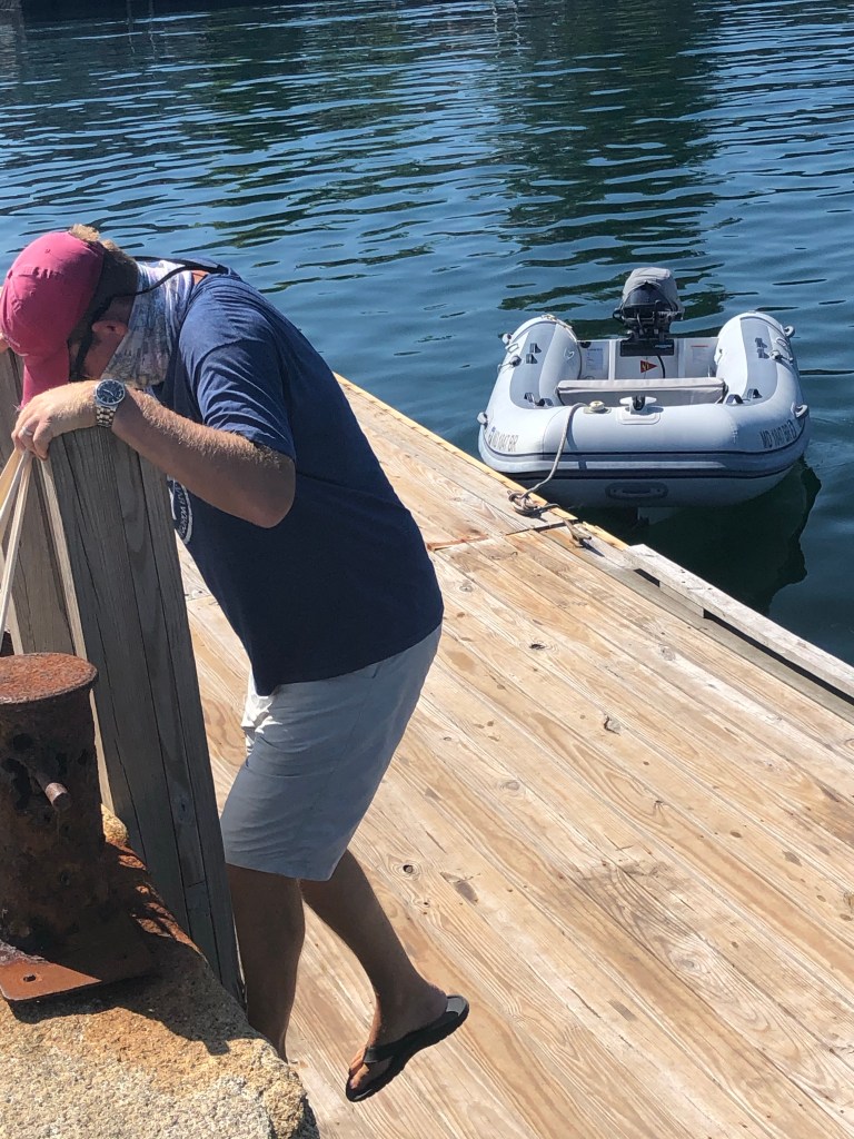 Isle of Shoals is a group of small islands only about 6 miles off the coast and straddles the borders of New Hampshire and Maine. There are 9 islands total, 4 in NH (Lunging, Star, Seavey, and White), and 5 in Maine (Appledore, Smuttynose, Cedar, Duck, and Eastern). The Isle of Shoals anchorage is called Gosport Harbor, and it sits between 3 of the islands. It is not a “hidden gem” as it is easily accessed by day tripping powerboats from Portsmouth NH, so can have a party vibe on nice days. Luckily, most of the boats around us were there just for the day. As dusk arrived, only a few boats remained and we enjoyed grilling out and a quiet evening. Star Island is curious as it attracted artists and writers to the Oceanic Hotel in the 1800’s and is still standing but in dire need of a makeover. Brian said it was super creepy. Today, it is operated by the Unitarians and the United Church of Christ and hosts retreats, camps, and conferences. Due to Covid it is all shut down. We did not disembark as it all seemed a bit like a horror film set. Instead, I was able to enjoy SUP in the quiet and protected harbor.