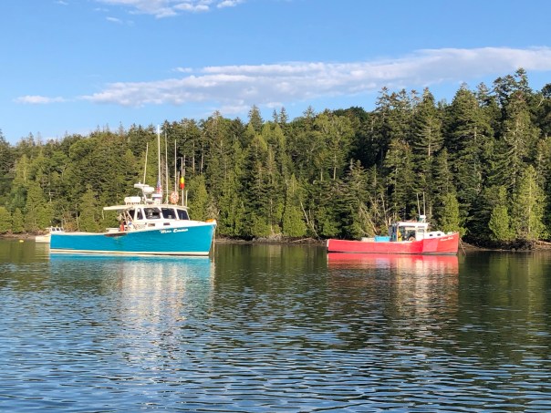 Time flies when you are having fun! This is my excuse for being behind in blogging as we have been in Maine since the first of August. Last I left you we were heading to Portland for refuge from Hurricane Isaias. We stayed at a slip in Dimilo’s Old Port Marina in downtown Portland. This proved to be a great spot not only for weather protection, but, also for the wonderful people we met. Susan and Barry, on their Sabre 42 powerboat, hail from Massachusetts. They were a wealth of knowledge on cruising New England. We enjoyed socially distanced happy hours with good conversation and exchange of helpful tips for baking and cooking in the convection oven (more on that later). Immediately next to us was a Sabre 54 powerboat with owners Angelia and Gene and their 2 dogs, Ginger and Carolina. They planned to head to Eastport Maine which is the furthest north and east in Maine before Canada. Unfortunately for them and us, Canada is not allowing Americans in due to Covid. We looked forward to Nova Scotia, especially Brian who wanted to go to Oak Island and find the treasure (for all “Curse of Oak Island” tv show fans you would understand). Oh, well, maybe next time!! Angie and Gene rented a truck to pick up bikes for their trip. They kindly offered their truck to us for grocery shopping. This is the last Trader Joe’s and Whole Foods in Maine and even though both stores are only 0.5 miles from the marina the truck was invaluable to stock up on food and alcohol for the next several weeks. Trader Joes’ 2 buck and 3 buck chuck (cheap wine that tastes good) are onboard!