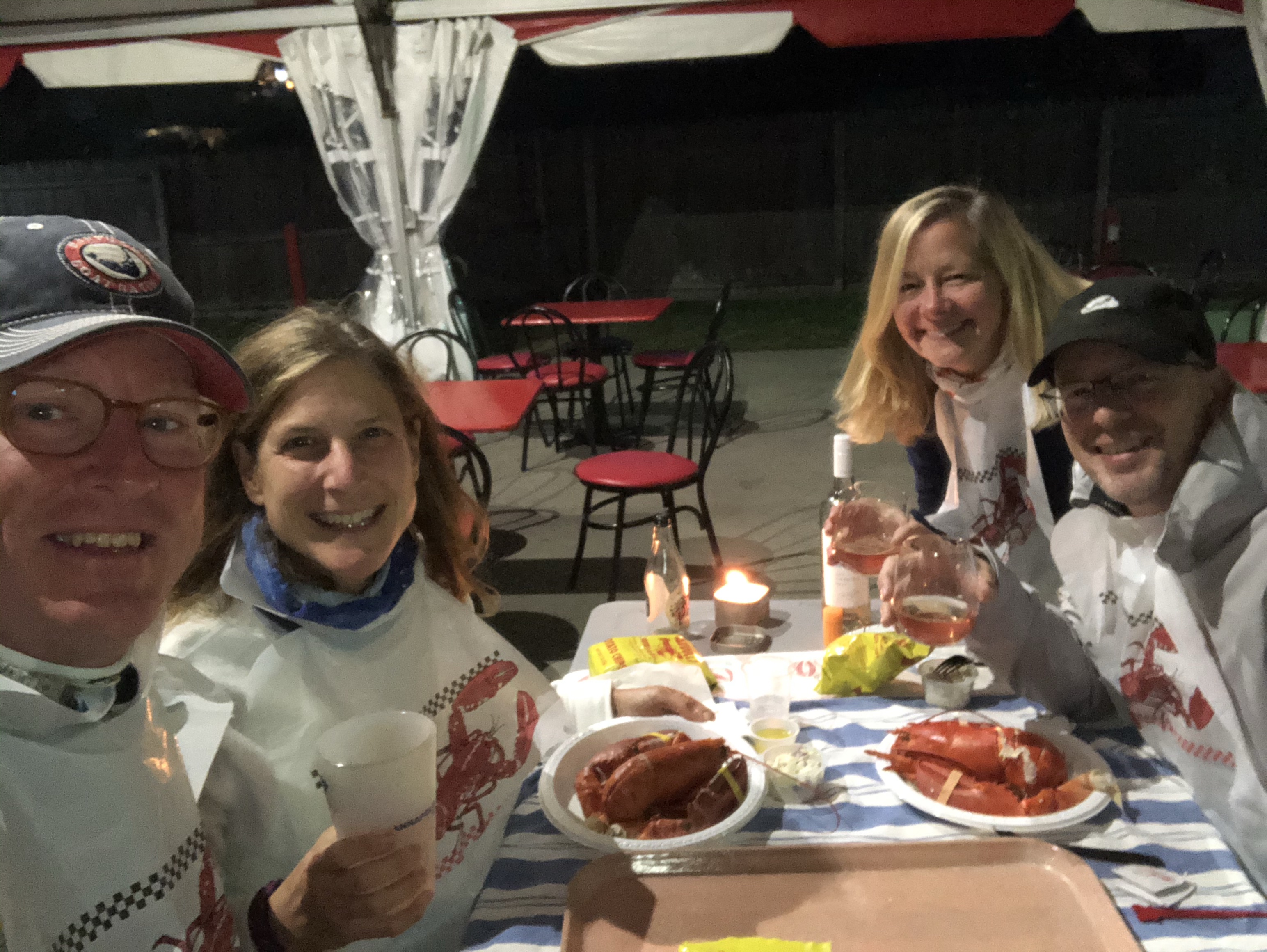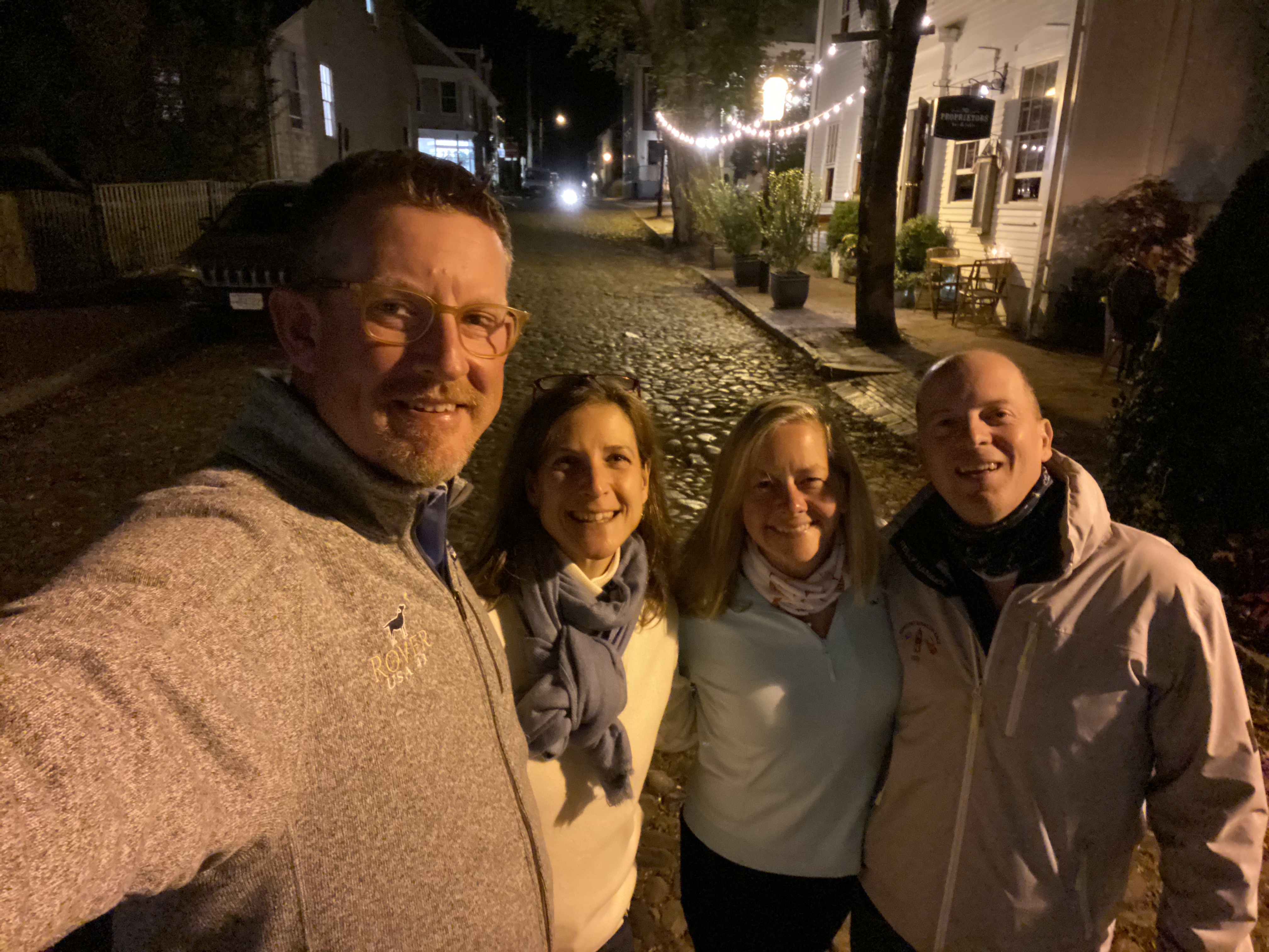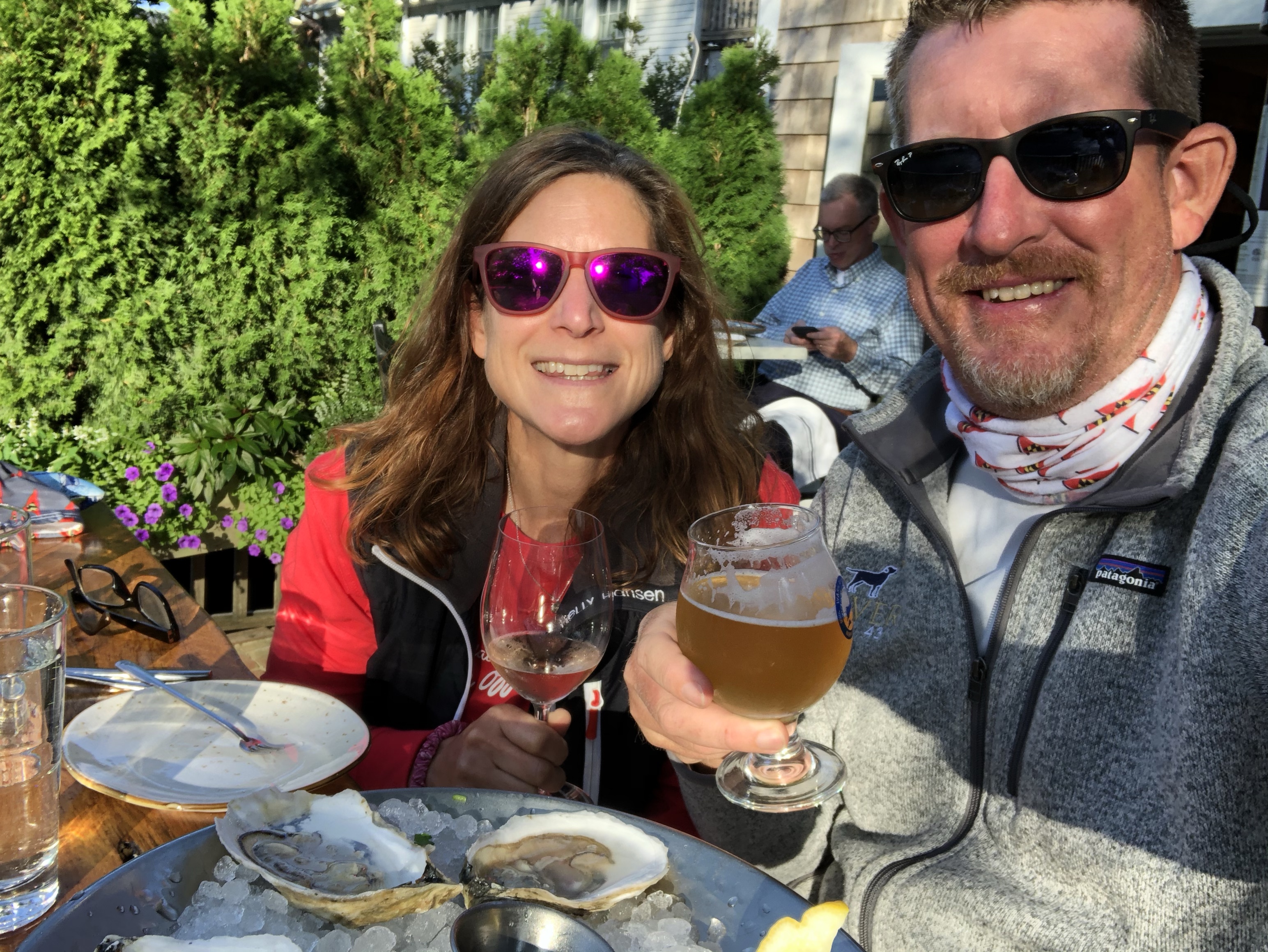 We headed off to Nantucket to outrun another front coming in with very strong winds (gale!) and got a slip at the Nantucket Boat Basin. Nantucket is wonderful, expensive, and “decadent.” Amazing food, shopping, and the most beautiful homes with exquisite views. It was nice to stay at a slip with “shoulder season” prices. Shoulder season is before Memorial Day and after Labor Day, and is when most vacationers head off island. It is the best time to be on these islands with fewer crowds, although, Covid took care of some of that as well. The island is great to run and bike. The trails are safe and wide, paved, and well marked. Brian and I biked from town to Madaket Beach for a picnic and went off road riding to Cisco Brewery, a favorite stop. Unfortunately, everyone else had this same plan and due to Covid the queues to the outdoor beer tasting areas were enormous, so we biked back to the boat and enjoyed the store bought Cisco beer onboard! Not a bad plan B. However, I would recommend going to Cisco Brewery in a non Covid year!! Coffee was great at Handlebar Café and Corner Table Café. We met up with my cousin Valerie and her significant other, Jimmy who were vacationing on Nantucket. We had a fun lunch on a beautiful sunny day at the outdoor Sandbar beach shack on Jetties Beach. Some of the best dinners were at Town and Proprietors, both downtown restaurants. It was also nice to see the newly renovated and expanded Nantucket Cottage Hospital. In 2008, I had a potential opportunity to work here, but, the Great Recession of 2008 forced the hospital to stop the expansion plans. Happy to see they finally completed it in 2019!