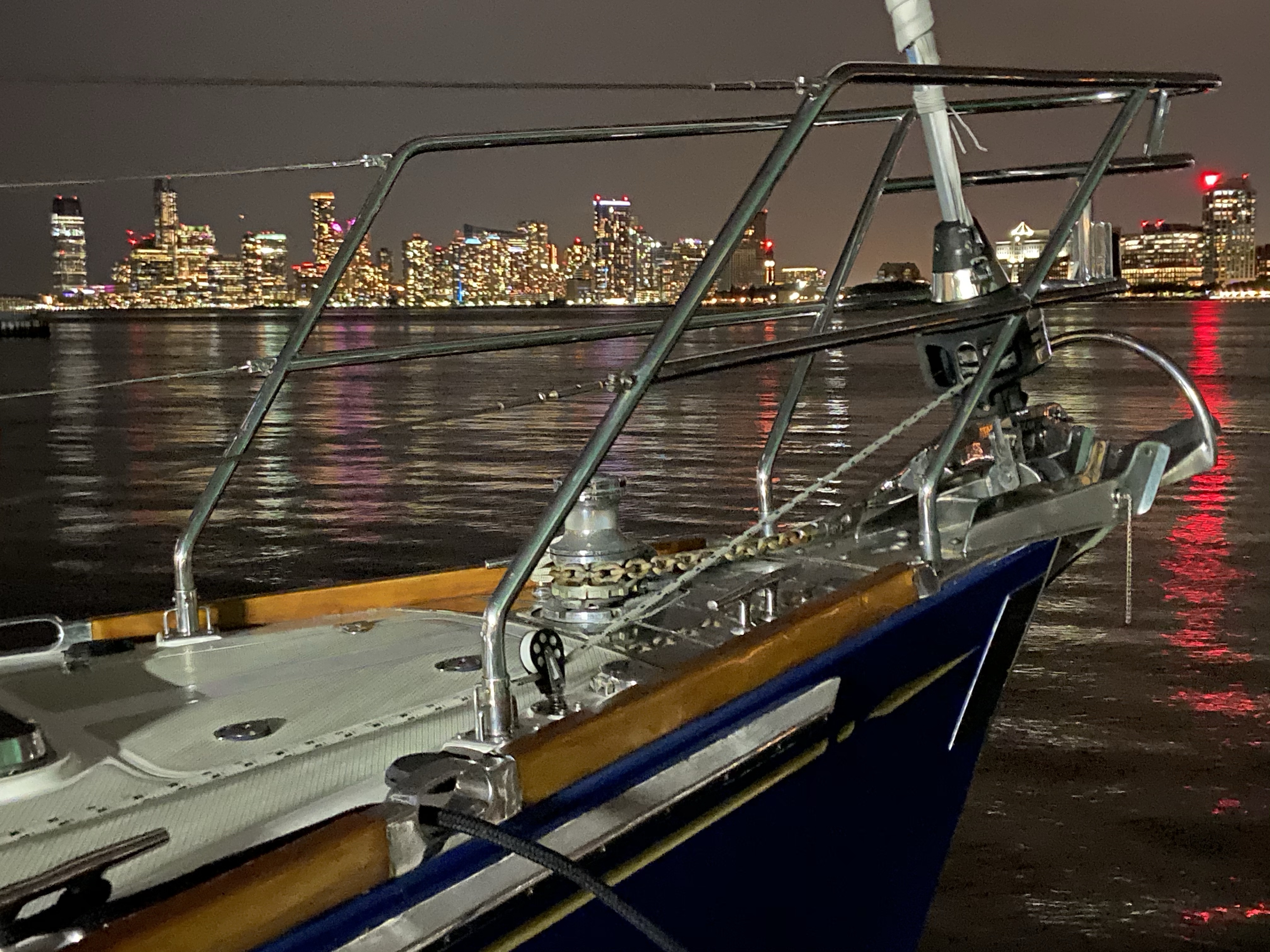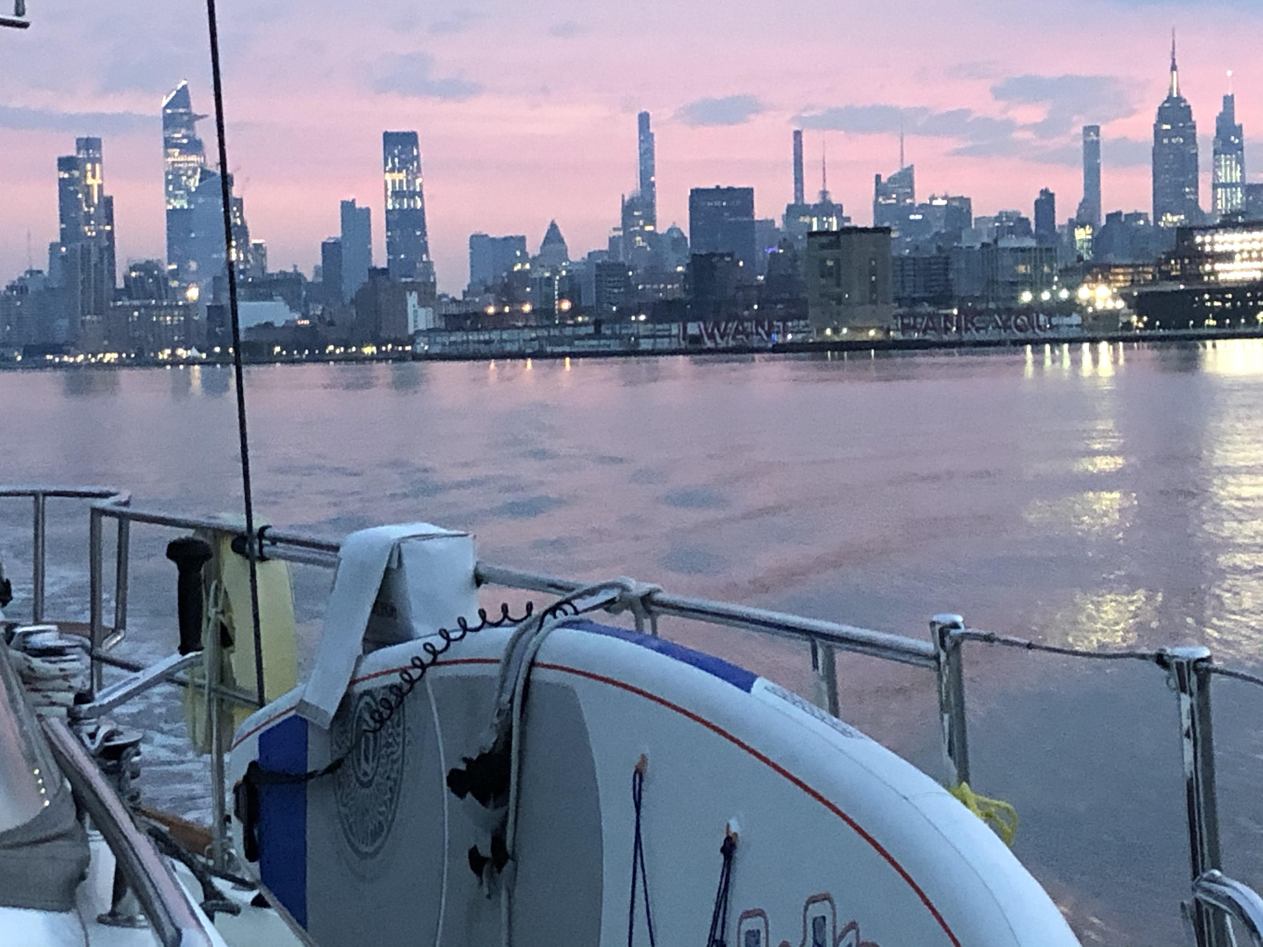 Moving down Long Island Sound, we made a quick stopover at Rich’s favorite childhood place, Seawanhaka Yacht Club. We moored here for the night. Keeping with the Covid-themed summer, we couldn’t go into the club but, we walked the grounds and enjoyed Rich’s memories. We dinghied to Cold Spring Harbor for a nice coffee and scone at Sweetie Pie’s on Main. With NYC skyline looming, Rover was off to the big apple.