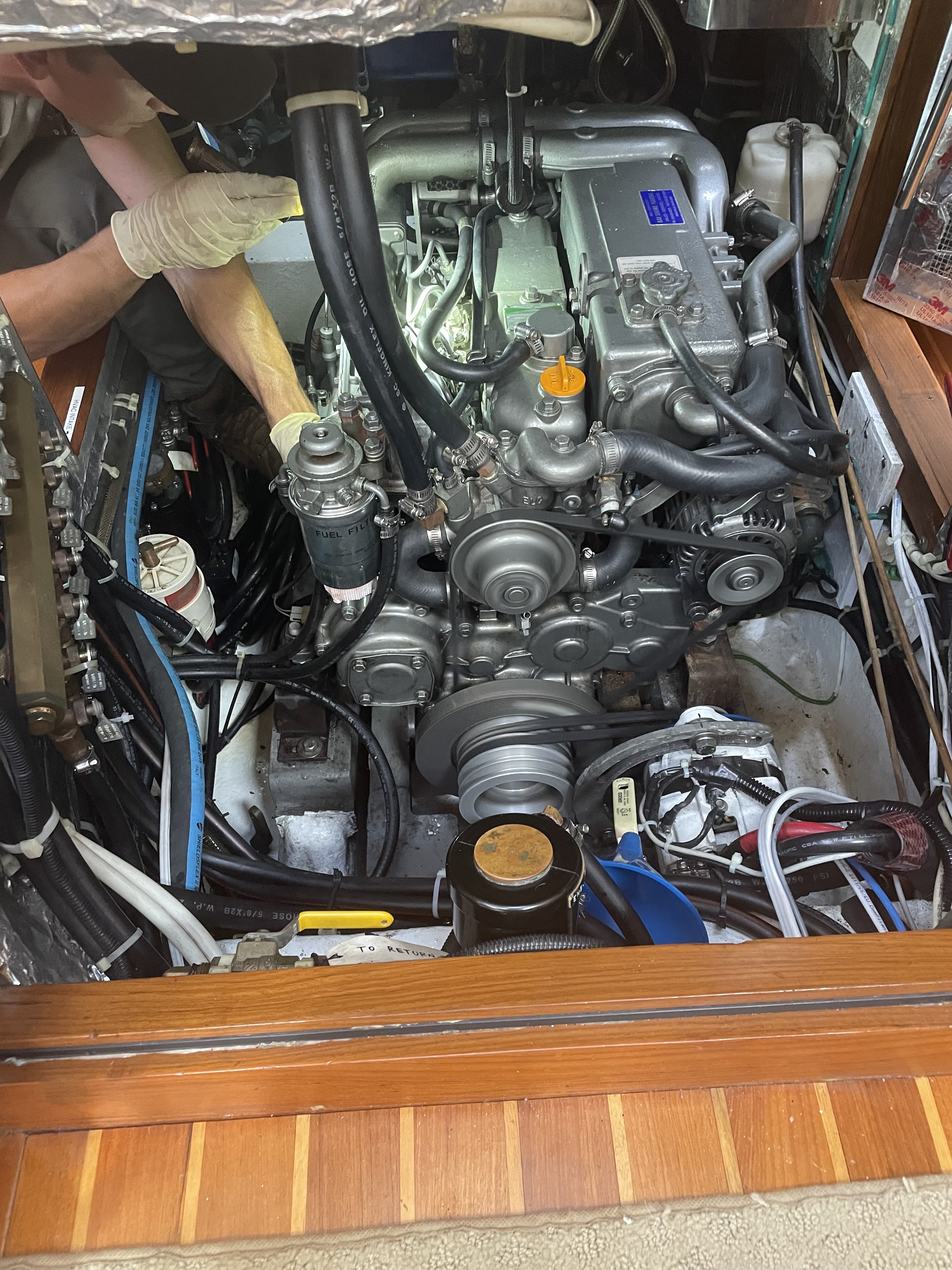 We called Old Port Marine and begged them to prioritize re installation of our injection pump so that we could run for a haul out. Happily, they sent their (excellent) mechanic Ethan out first thing and he got the pump in by late morning. Thank you Ethan and Old Port!