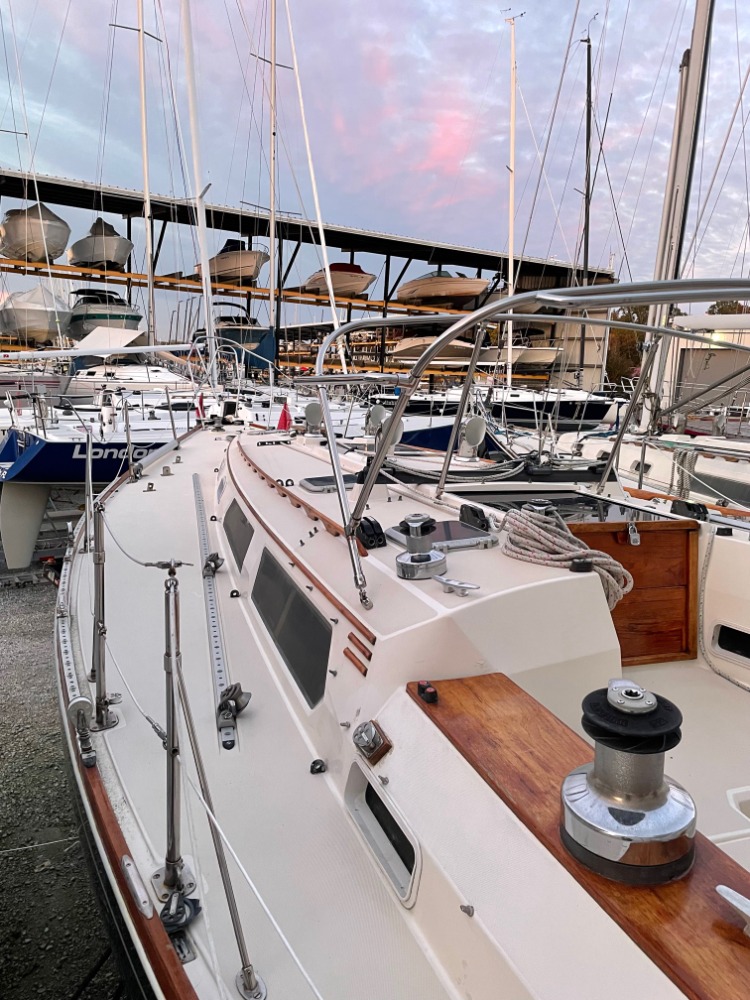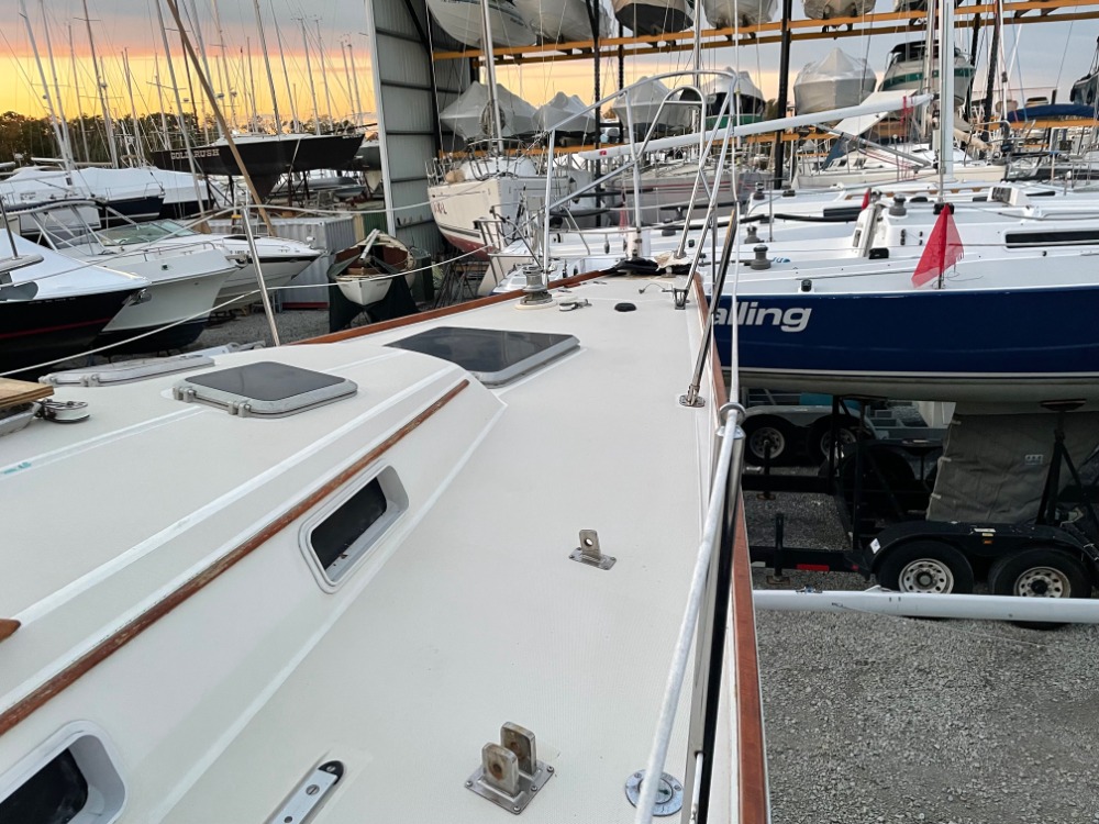 At present there are two terribly sad Sabre 42s in our home boat yard (Bert Jabins). The first appeared in town a couple of years ago and has an absentee owner. She sprung a leak while tied up at aher slip and began to sink. Happily, the boat yard staff noticed and contact the owner. Instead of driving down to check on her, he called a vendor, had the leak plugged and had the flooding waters pumped out, but took no further action to dry the boat out. That fall he called the yard and asked that they haul her out. The boat yard has “seen this movie before” and confidently predicts that he will eventually abandon the boat, which will most likely have to be disposed of like my beloved J/29 was.