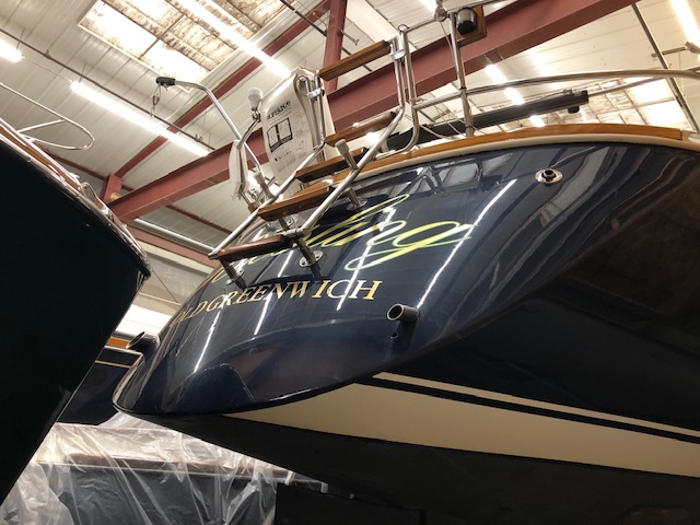 Rover is back in the water this weekend for a sea trail tomorrow for a buyer candidate! Each evening this week I have been aboard while she has been on land on the jack stands, winterizing various system in advance of very cold weather expected later this coming week (some of these systems have been un-winterized for the sea trial. Ugh!). It’s been a great bonding experience to be aboard showing her love and care – just us two, bonding one-on-one. It really has been a privilege to serve as Chief Engineer on this special boat, and as much as I might have complained at times when we had more problems than were convenient, if I am honest deep down I really enjoyed the responsibility of taking care of Rover and her array of sophisticated systems. Just look at the images I snapped over the last two days – look at the sheer beauty and the artistry of this design. She represents a totally lost art in yacht design outside of just one or two models left in production that come anywhere near her standard of style and workmanship.