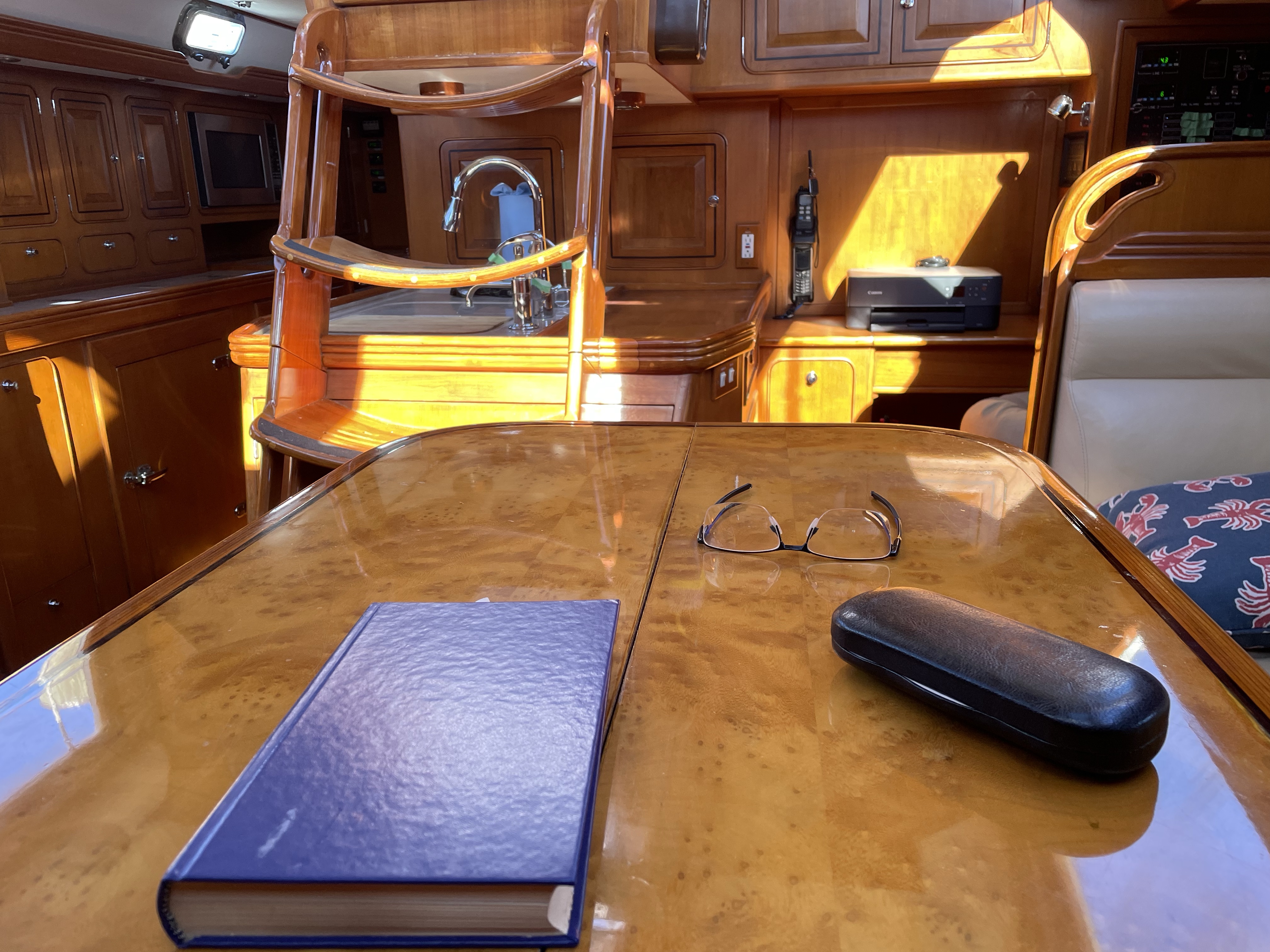 Tuesday I took a one-day dive bomb trip to Maine (traveling Monday and Wednesday to and from) to sea trial the Sabre 38 we have a contract on. We are waiting on the surveyor’s list of recommendations but generally the trial went well. I don’t want to jinx anything by revealing exactly which boat she is so I will just tease with some photos showing some of my favorite design elements of the boat until everything is finalized. Based on the way she handled during the test sail in only 4 knots of wind, I will say this: a deep draft Sabre 38 MKII will be my next boat either way – let’s see if it all works out and this one is my next true love!