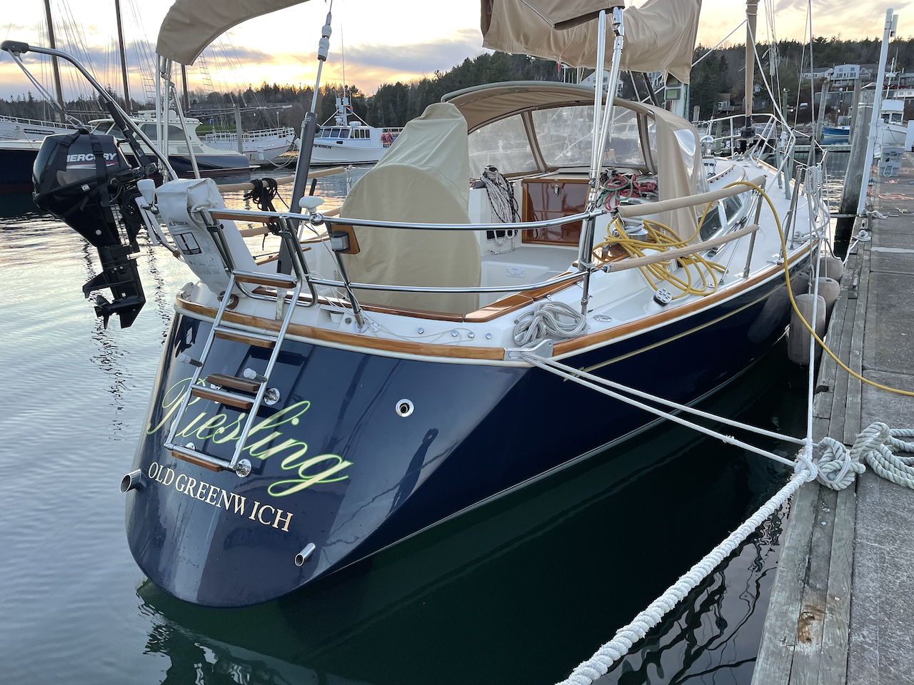 Here she is! A 1988 Sabre 38 MK II hull #12. New Yanmar engine, electronics, hatches, portholes and plumbing. Deep draft fin keel. Recent sails. Stored indoors at Hinckley over the Maine winters for the last 10 years and 100% Hinckley maintained and refurbished. The stars have aligned for us! Full details on her listing here.