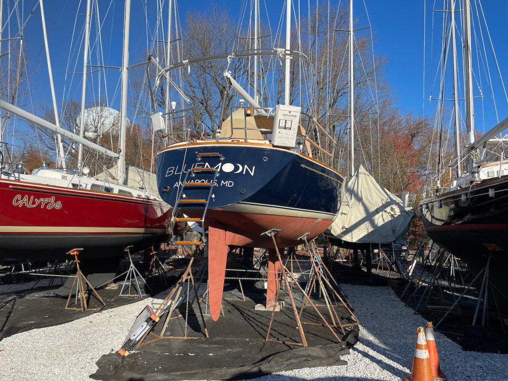 And I couldn’t be more excited! We had a terrific fall season day sailing around Annapolis and taking a couple of short overnight cruises, but just before Thanksgiving it was finally time to haul out and get set up for a fun winter of projects!
