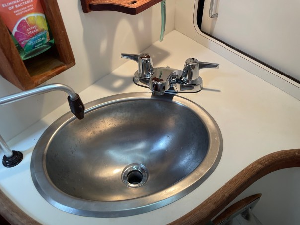First, the faucets in both the aft head and the forward cabin looked crappy. Time to yank them and replace with some Home Depot replacements.