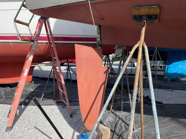 5 thoughts on “Spring Projects: Painted Spreaders, New Dorades Being Made, New Foredeck Light, Dropped The Rudder, Re Sealing Chainplates